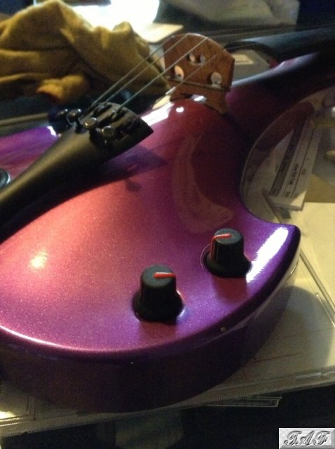 For sale, CUSTOM COLOUR Pink and Purple Bridge Aquila Electric Violin. A wonderful instrument to play and has the best tone and performance of all the electric violins I have played and is a popular instrument used by professional musicians.