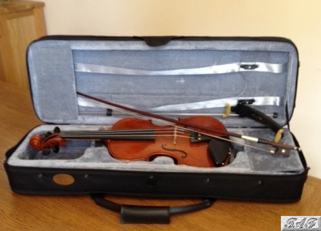Bought in 2012 from Brittens Music shop, chosen by my daughter's teacher, an older violin, much played by my daughter until upsized to the full size. In excellent condition.