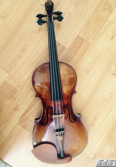 Fine old Jacobus Stainer violin , estimated age at around late 1800s / early 1900s. Nicely crafted instrument, with masterly carved scroll in shape of a lion's head. This beautiful violin shows no cracks or open seams, but naturally some marks in it´s old dark varnish.Comes with a case but no bow is included. Beautiful old Czeck quality instrument in immediate playing condition! Great loud, warm and mature sound.